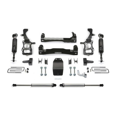 Fabtech's 4" F150 lift kit utilizes their proven heavy duty construction and design features found in their 6" systems but with less lift and at a lower price. This lift kit is a great choice for Ford owners that want to run a 35" tires for a more aggressive look while preserving the excellent highway manners of the F150.