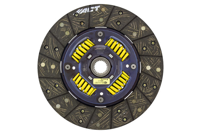 3000304 is a performance street disc and the most popular disc purchased. It features premium organic materials with high copper content for better heat transfer. Performance street discs allow for quicker shifting and smooth engagement. These discs feature a reduced marcel for faster shift action to complement ACT pressure plates. ACT spring-centered assemblies use bushings and cone springs similar to factory clutch discs. This creates frictional dampening, which improves clutch life and reduces noise. Quiet operation with increased strength and reliability.