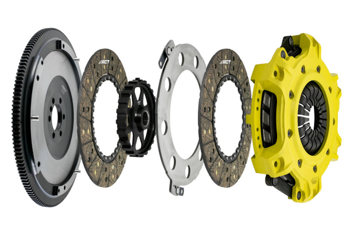 T2S-G14 Mod-Twin 10.5 XT Rigid Street Kit blends easy pedal feel, smooth but positive engagement with quick shifting for high-powered street machines by combining twice the organic friction surfaces with a no-nonsense solid Mono-Drive hub in a completely modular design. Each diaphragm spring endures an exclusive four-stage heat treating process to provide a consistent light pedal feel. Steel-backed Friction Plates with high quality organic friction materials deliver stable friction coefficient, good heat capacity and long clutch life. These Friction Plates uniformly transfer torque to a Mono-Drive Chromoly hub, which is heat treated for strength and durability extending input shaft life with one continuous spline. The lightweight, rigid design allows for quicker shifts and trouble-free service. This kit includes a CNC-machined and dynamically balanced flywheel, pressure plate cover, diaphragm spring, face, puck-style ceramic friction plates, rigid Mono-Drive hub, floater, alignment tool and pilot bearing (where applicable). Mod-Twin clutches are fully rebuildable, and replacement discs may be ordered separately.