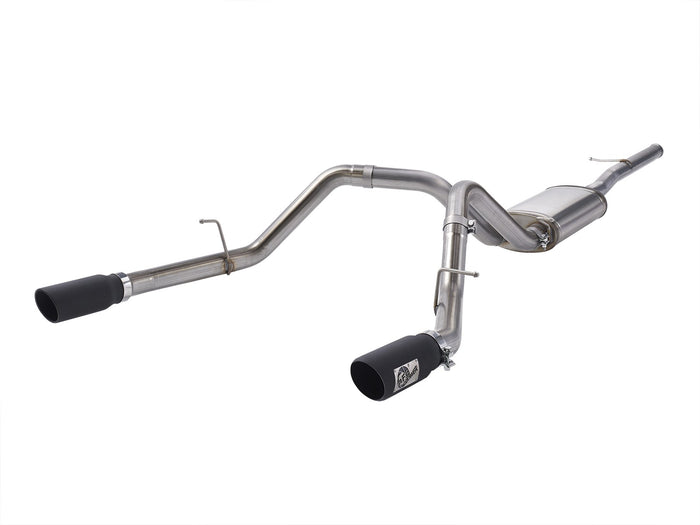 Finishing off the exhaust are dual black stainless steel exhaust tips. The tips feature unique stainless steel laser-cut aFe POWER logo plates which are riveted on for an aggressive style.