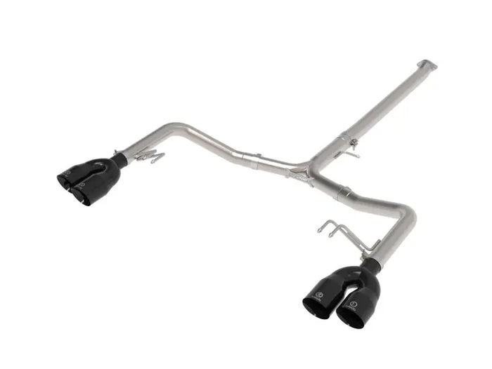 This axle-back exhaust system is constructed of 3 IN - 2-1/2 IN mandrel-bent 304 stainless steel tubing for maximum strength and durability. Finishing off this dual exhaust system are quad 4 IN diameter black 304 stainless steel clamp-on exhaust tips. The tips features a laser etched Takeda logo for a unique style. This system produces a deep sound unleashing all available horsepower and torque. Utilizing a factory style flange and hangers this system is a direct bolt-on system, which requires no cutting or modifications for a hassle-free installation. A mitered merge collector is used to decrease turbulence and increase exhaust velocity resulting in increased horsepower, torque and improved throttle response. State-of-the-art computer-aided design technology is utilized for precise vehicle fitment. 100% MIG-Welded for race-proven strength and durability.