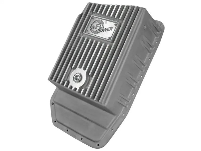 aFe POWER Street Series deep transmission pan brings performance engineering to the protection of your trucks transmission. This transmission pan has additional capacity for 7 more quarts over stock at the factory line, a magnetic drain plug and a 1/8" NPT port for your temperature sensor. Built-in internal and external fins transfer heat from the fluid to the outside air for maximum cooling. This transmission pan is constructed out of durable die-cast A380 aluminum with reinforced ribs and a raw finish with machined accents for maximum strength and styling.