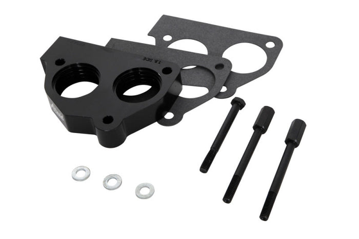 The POWERAID Throttle Body Spacer is designed to enhance off-idle torque from 800 rpm to approximately 3,000 rpm. The spacer utilizes it's unique, patented Helix Bore design to spin the incoming air charge as it passes through the throttle body spacer. The spinning air action boosts the velocity of the incoming air and contributes to better atomization of the air/fuel mixture as the air charge enters the combustion chamber. The end result is more part-throttle torque and improved mid-range power.
