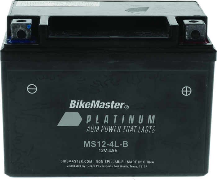 If you're looking for a maintenance free and non-spillable battery for your bike, the Platinum AGM battery by BikeMaster® is for you. Manufactured from absorbed glass mat that captures electrolytes, these batteries have a longer storage life and higher performance than standard wet batteries. They are permanently sealed so that you do not need to check levels or add water. This battery by BikeMaster® comes with a one-year warranty.