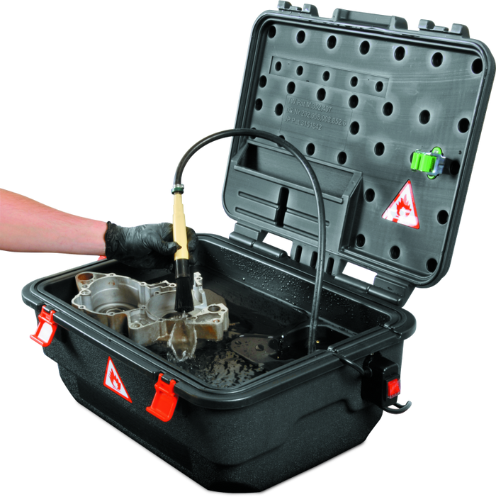 Lightweight, corrosion-proof, insulated, safe, cleaner and cost-effective, this is a better way to clean your parts. This light and portable washer is UL and SAA certified. It is recommended that you use it with a water-based solvent.