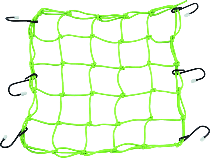 This 13 in. x 13 in. multihook cargo net features metal hooks with rubber tips and comes in seven different colors.