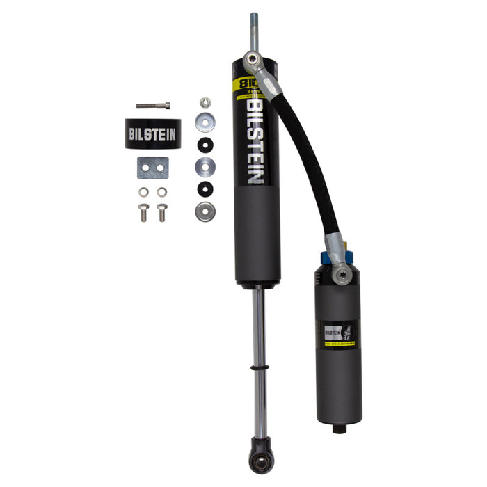 The Bilstein B8 8100 (DSA) reservoir shock absorber is an adjustable large bore 60mm direct fit solution for lifted trucks and SUVs. Constructed from aerospace quality billet components, the large 60mm ID shock body offers a higher oil volume capacity to control heat while tackling rough road surfaces over long distances. Click adjuster knobs allow easy and precise Dual Speed Adjustment of both low and high speed compression to tailor your ride to any surface. Each B8 8100 (DSA) offers a unique remote or piggyback reservoir solution for an easy, hassle free installation. These shock absorbers feature a monotube design for consistent fade free performance and utilize velocity sensitive digressive valve settings which are tuned for each specific application. The large 60mm piston design offers more comfort and control in all driving conditions. The Bilstein B8 8100 (DSA) will allow you to tame the terrain in comfort.