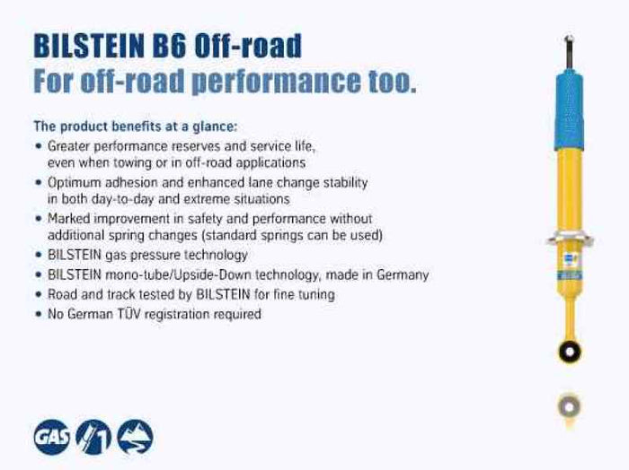 Bilstein B6 4600 shock absorbers are designed as a direct fit upgrade to OE shock absorbers on stock height light trucks and SUV’s. These shock absorbers feature a monotube design which provides consistent fade free performance. B6 4600 shock absorbers utilize a unique, velocity sensitive, digressive piston which reacts to changing road conditions. All B6 4600 shock absorbers are tuned for each specific application to ensure optimal performance is achieved. B6 4600 shock absorbers offer a significant improvement in ride quality, handling, and comfort.