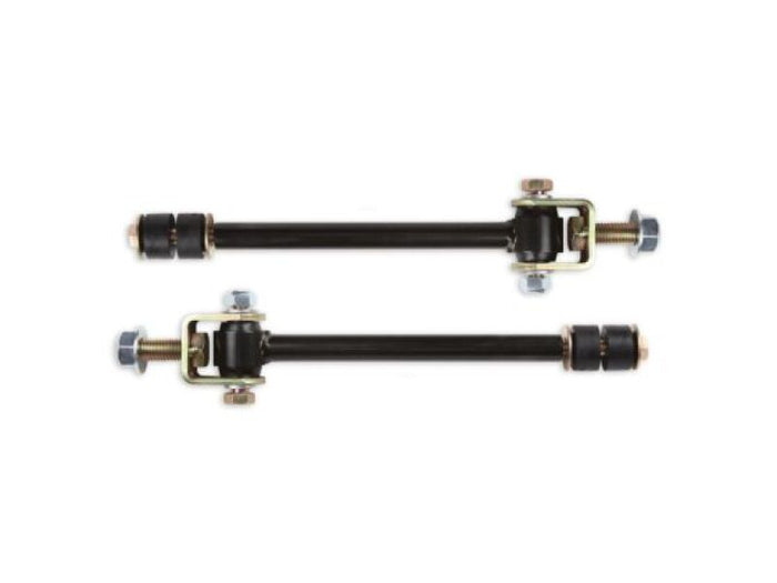 These end links are also a little longer than recommended lengths to allow clearance for our Larger Diameter tie-rod upgrade. Used as a Heavy-Duty replacement of the OE style end links which are notorious for breaking.Our Sway bar link kits utilize a lower clevis system which takes some of the angle off of the link when the suspension is cycling. Minimizing stress that can cause breakage.While we often upgrade other manufacturers kits with these links. We recommend you check your current length and match it up to the specs to help order the correct size if you do not have a Cognito Motorsports lift. Sold in pairs. Made in the USA.Note:Mounting surface to mounting surface measurement for this kit is 14 Inch(Measured from top of lower control arm up to the bottom of sway bar).