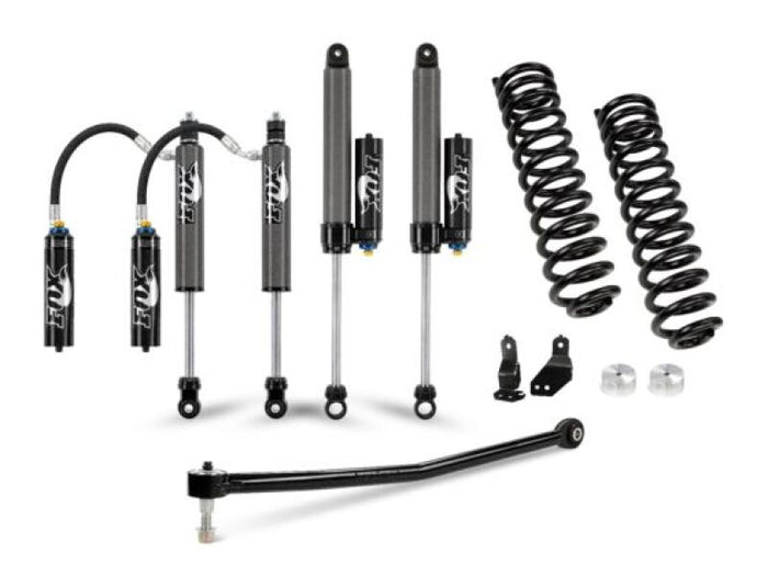 We have bundled everything you need in a leveling kit for your F250/F350 4WD with high quality Cognito components and Fox shocks. There is no guesswork.The Cognito 2-inch front coil springs offer the increased ride height you want without sacrificing ride quality. These springs feature a progressive spring rate to achieve optimal ride quality.Cognito HD Track Bar re-centers the front axle and is specifically designed for 2 inches of front lift. The Track Bars fixed-length design makes for a quick install with no unnecessary adjustments.Factory Race Series 2.5 Reservoir smooth body shocks give you enhanced ride quality and the control you need when heading off the pavement. They take their design from Foxs Off-Road race shocks, so they have been thoroughly perfected in brutal conditions that you will probably never see. Fox athletes push the boundaries in competition to develop race-proven performance you can bolt onto your Truck. Factory Series shocks provide improved damping in any terrain. Experience for yourself the incredible performance and precise control that Factory Race Series 2.5 Reservoir shocks deliver.