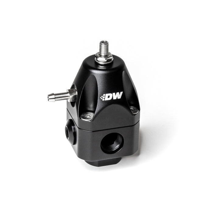 DWR1000c adjustable fuel pressure regulator, anodized black. Dual -6AN inlet and -6AN outlet. Universal fitment