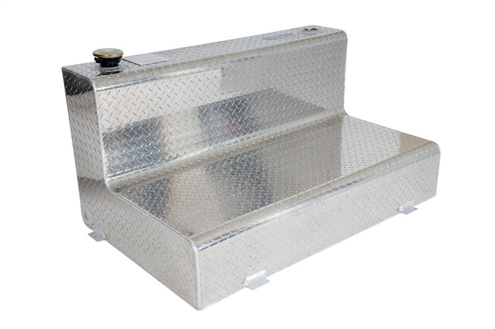 Dee Zee Auxiliary Tanks - A safe and convenient means for transporting non-flammable liquids. Auxiliary tank can be connected to gravity flow kit to syphon fuel directly into your vehicles diesel gas tank (sold separately). Constructed of heavy gauge Brite-Tread aluminum. Radius curve design eliminates key weld pressure points. Tanks feature stability baffles, lockable cap, 3/8 in. drainage plug, and venting coupler. Tanks are intended for private use (non-commercial). Hydrostatically pressure tested to meet Federal Motor Carrier Safety Administration requirements for auxiliary tanks. Meets Federal DOT requirements for UN31B tanks. Connector kits to feed diesel directly into your fuel line sold separately (DZ97960 & DZ97961).
