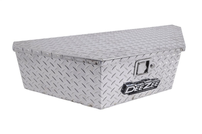 Dee Zee Tool Box - Triangle Tool Box for trailer tongues. Constructed of strong Brite-Tread aluminum with triangle design. Built to mount onto trailer tongues. Features lockable stainless steel paddles handles and gas shocks to assist in opening. Works well for storage wherever you may need it.