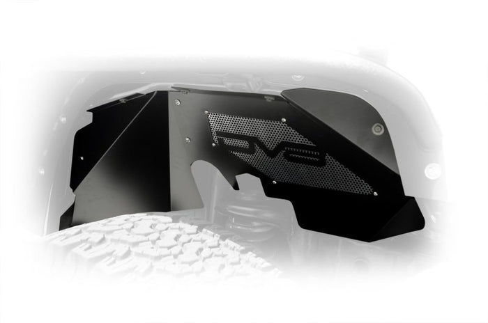 DV8 Off Road Front Black Powdercoated Aluminum finished, non-lighted inner fenders for 2007-2018 Jeep Wrangler JK, are designed to reseal your engine compartment when using aftermarket fenders, clean up your inner fender, and provide better air flow where it counts. Our inner fenders also allow easy access to the shocks and do not require for the fender and inner fender to be removed like our competitors! Set of left and right inner fenders.