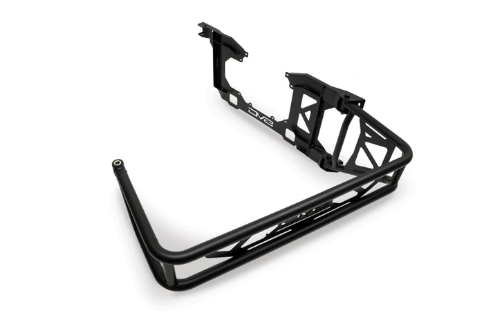 The Bronco Spare Tire Guard was designed with several functions in mind. After upgrading to larger tires, the spare tire has been known to cause flex in the tailgate due to the added weight on the factory carrier. The tire guard reinforces the tailgate by mounting to multiple points along the tailgate, increasing rigidity. Additionally, the guard can accept locking pins (not included) for security against theft.