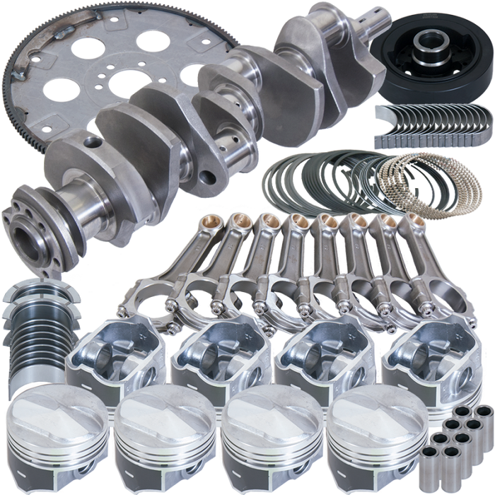BALANCED 4.000" Cast Crank,6.135" I-BEAM Rods,7/16" ARP 8740 BOLTS,HYPEREUTECTIC SPEED PRO 22CC DOME 4.310" PISTONS,PLASMA-MOLY STANDARD GAP RINGS,KING SI Rod/MAIN BEARINGS, PIONEER DAMPER & 168 TOOTH FLEXPLATE.
