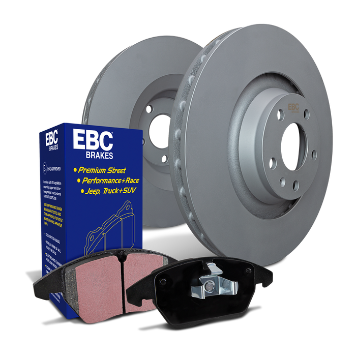 Save 10% from buying separate parts with EBC Brakes quality brake kit. High efficiency EBC pads with patented EBC Brake-in coating and premium rotors with thermic anti rust coating, fully balanced and run-out tested for smooth braking.