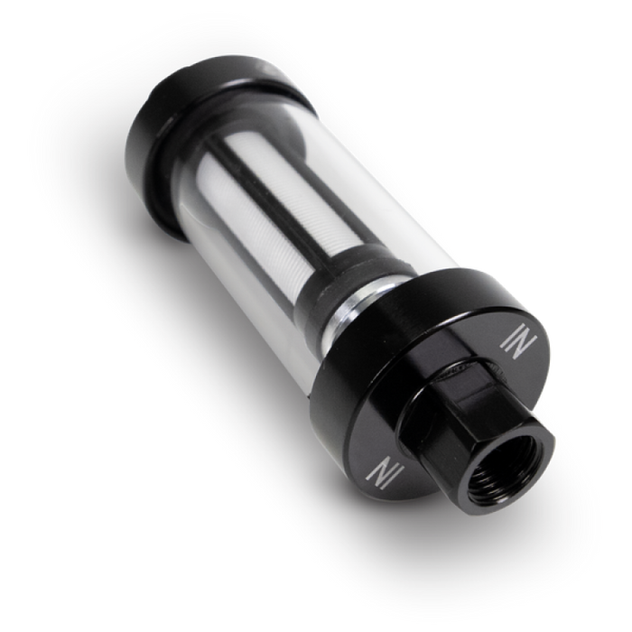The Edelbrock Clear View Fuel Filters dress up any carbureted car’s engine bay and provide a quick visual check of fuel flow and fuel condition. Fully machined aluminum ends are E-coated for durability with laser inscribed details. The 100-micron filter keeps dirt and debris from clogging up the small passages of your carburetor. Filter elements are easily replaced using kit PN 8749. PN 8750 includes multiple interchangeable injection-molded threaded nipples to fit ¼”, 5/16” or 3/8” i.d. hose sizes.