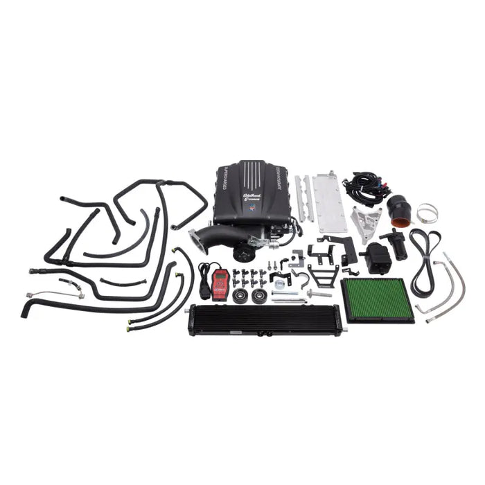 The Edelbrock supercharger Stage 1 Street System part #1564 for 2007-14 Suburban, Tahoe, Yukon & Yukon XL increases the performance of your 5.3L Gen IV engine to 384 horsepower and 390 ft-lbs of torque at the rear wheels. The core of this system is the Eaton Gen VI 2300 TVS rotating assembly with a four-lobe design with 160 degrees of twist for maximum flow, minimum temperature rise and quiet operation for excellent drivability. We also designed our superchargers with an integrated bypass valve to help eliminate parasitic loss under light throttle, improving mileage potential. Our unique and efficient inlet configuration results in a shorter, less restrictive intake path for improved airflow, without the need for a jack-shaft. Keeping the air cool is a high-capacity air-to-water intercooler and low-temp heat exchanger. The Edelbrock #1564 system is 50-state emissions legal. The supplied tune is intended for completely stock vehicles with the exception of a cat-back exhaust.