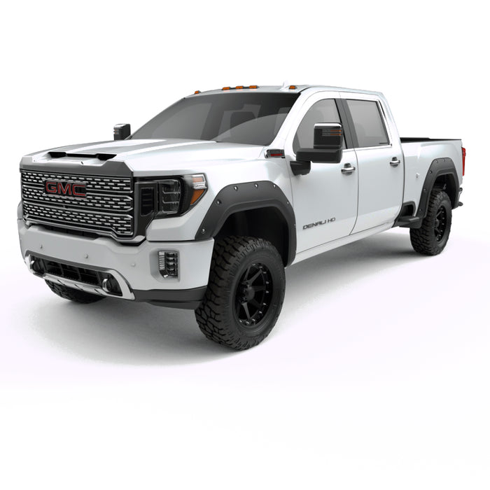EGR Bolt On Look Fender Flares features EGR's OEM grade, no drill installation. EGR Fender Flares are the perfect DIY upgrade for your vehicle. The UV protected, lightly textured finish is easy to clean and fade resistant. EGR Fender Flares can also be easily painted to match your vehicle. Real stainless steel bolts for uncompromising detail. Increase tire coverage of your fenders by up to 2 inches. Limited lifetime warranty. FRONT & REAR SET.