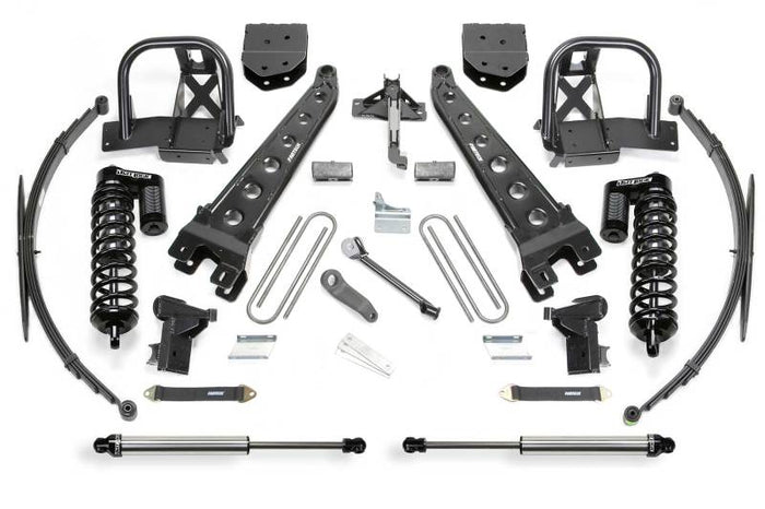 Our patented Radius Arms feature a full tubular structure strengthened by dimple die side plates, with an adjustable alignment cam at the axle to allow caster adjustment. Front lift includes the Dirt Logic 4.0 Stainless Steel Coilover Shock conversion and includes rear 2.25 Dirt Logic Stainless Steel shocks. Completing this system is a Trac Bar relocation bracket, Pitman Arm, Sway Bar drops, replacement rear Leaf Springs, and a Block & U-bolt kit.