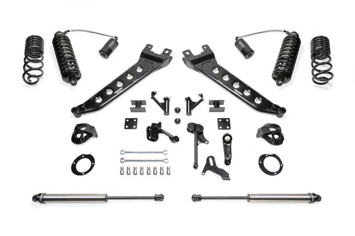 The system utilizes the factory upper coil bucket with support gussets for superior strength. The lower mounts weld to the axle housing and have cross support gussets for the factory TracK Bar bracket. The Dirt Logic 4.0 Coilover features a stainless steel body for maximum corrosion resistance with a remote billet aluminum reservoir. These Dirt Logic 4.0?s provide a super smooth highway ride with outstanding offroad damping for rough terrain.