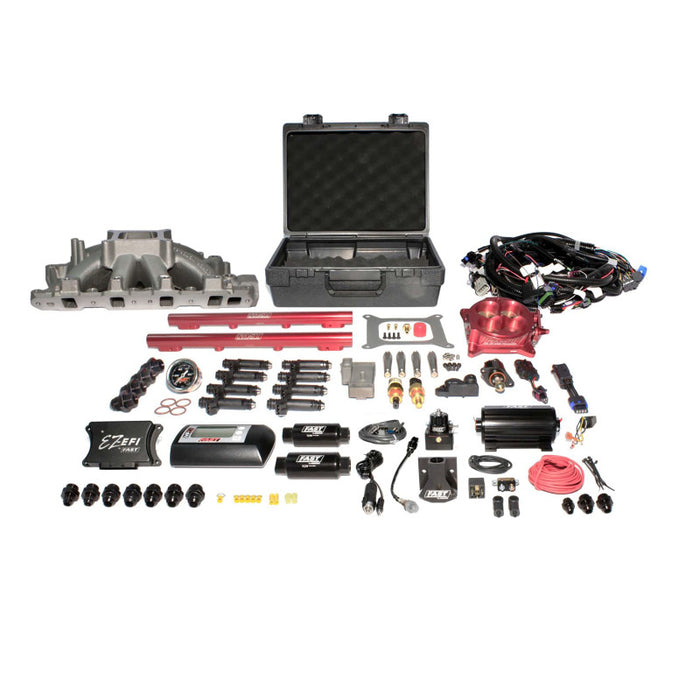 Engineers at FAST? have developed complete bolt-on EZ-EFI? Fuel Multi-Port Electronic Fuel Injection Kits that allow anyone to install a multi-port injection setup on Small and Big Block Chevy and Small Block Ford engines that were originally carbureted. These kits can be used on anything from mild street rods and muscle cars to 1,000 horsepower all-out race cars. EZ-EFI? Fuel Multi-Port Electronic Fuel Injection Kits include carefully matched components, including the EZ-EFI?, hand-held device, single plane EFI intake manifold, throttle body, Precision-Flow? Fuel Injectors, fuel rails, fuel pump kit, all necessary sensors and clearly labeled wiring harnesses. These kits add style and function to any engine.