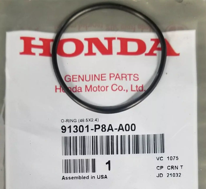 The 91301-P8A-A00 is a genuine Honda OEM camshaft seal O-ring designed to provide a leak-proof seal between the camshaft cap and the cylinder head. This critical sealing component helps prevent oil leaks around the camshaft area, maintaining proper oil pressure and protecting top-end components. A must-replace item during any VTEC spool valve, cam cap, or valve cover service.