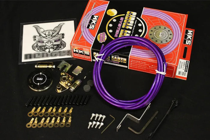 Circular Grounding System - By utilizing a 24 karat gold plated distribution block and multiple grounding points, improved idle and drivability are often obtained as the additional grounding points equalize resistance and voltage between various ground points. Each 8 gauge spiral twined cable is wrapped with signature HKS purple plastic to protect and add color to the Circle Earth System. Vehicle specific kits included pre-measured cable lengths and distribution blocks.