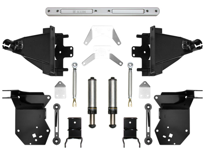 The ICON Raptor Bump Stop System includes heavy duty steel clamshell brackets, a billet aluminum frame crossmember, adjustable tension rods, hydraulic bump stops, and all of the necessary hardware required to complete the installation. The clamshell brackets, crossmember, and tension rods add strength to the frame to prevent damage during extreme off-road use while increasing chassis rigidity for predictable handling and improved vehicle dynamics. The 2.5” travel hydraulic bump stops feature velocity sensitive technology which means that as the shaft speed increases the damping ability ramps up, resulting in exponential bottoming resistance that won’t negatively affect articulation. Combining all of these components into an easy to install, bolt-on package, ICON has developed the most comprehensive rear bump stop solution on the market for Raptor owners seeking the next level of strength and performance.