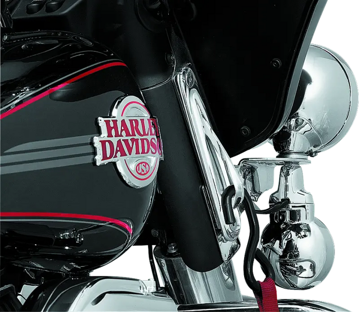 Stylish, teardrop tie-down brackets from Kuryakyn® bolt to the sides of the front fork and provide a secure, easily accessible point to attach tiedown straps to your ride.