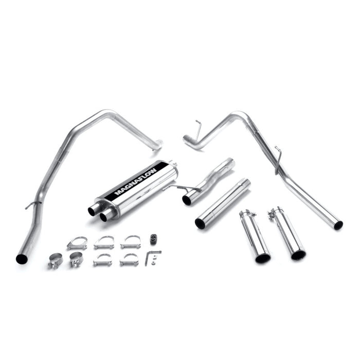 The MagnaFlow Dodge Ram 1500 Street Series 15788 brings out the personality of your 5.7L 2003-2003 Dodge Ram 1500 with our signature resonant, powerful engine tone and dyno-proven performance. Thanks to its fast-flowing, mandrel bent 3in. main piping and 1 Straight-Through mufflers ending in a Dual Split Rear exit with 3.5in. Polished Clamp-On-Single Wall-Angle Cut-Rolled Edge tips, this Dodge Ram 1500 exhaust kit has the performance chops to match its sporty sound and appearance. Upgrade your ride to the next level with an exhaust that has the pipes to put other Dodge Ram 1500’s to shame. With this system your vehicle will be producing Agressive exterior and Moderate interior sound levels while leaving other cars and trucks feeling envious at every stoplight. Exhaust kit 15788 features a cat-back layout that replaces your ride’s stock exhaust components from near the catalytic converter on back. Extensive 3D scanning during development has resulted in a direct-fit design that you can easily install yourself. 15788 is produced using CNC precision robotic manufacturing techniques and is backed by MagnaFlow’s 1-year limited finish warranty and limited lifetime construction warranty.