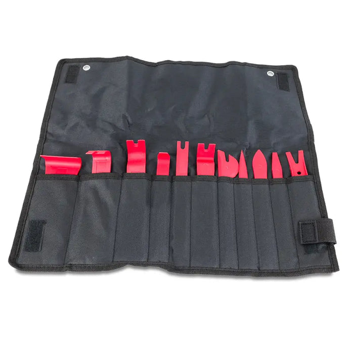 Stop scratching up your trim while using the wrong tools for trim removal. An effective trim-specific tool kit will save you time and prevent damage to your exterior/interior trim panels during removal. Mishimoto’s trim removal tool set includes 11 unique tools to remove any piece of interior/exterior trim on your vehicle. Our tools are constructed from durable impact-resistant nylon, which resists bending and prevents marring of the trim surface. In addition, our kit is encased in a cloth pouch for organization and easy transportation. As with all our products, this kit includes our signature Mishimoto Lifetime Warranty.