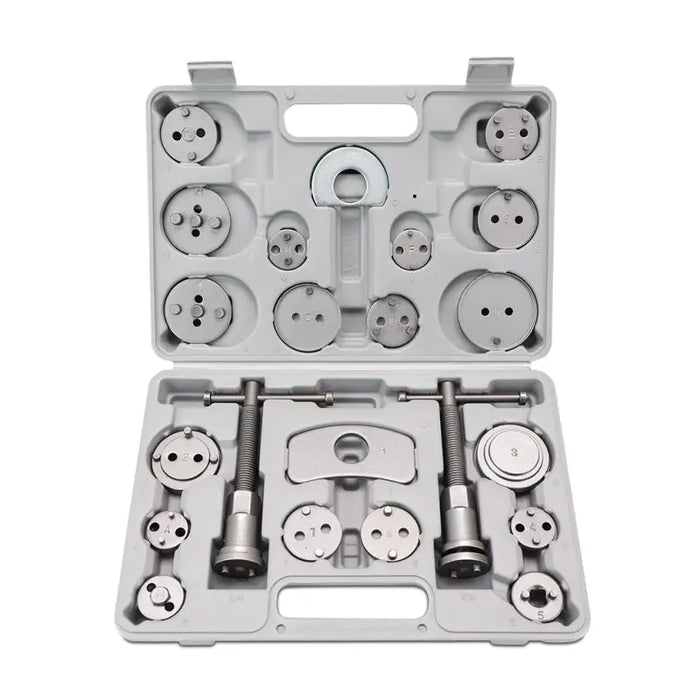 Upgrade your brake maintenance routine with the Mishimoto Brake Caliper Piston Wind Back Tool Kit, the ultimate 22-piece solution for any car enthusiast. Many modern vehicles with emergency brakes integrated into the brake calipers require the piston to be rotated and depressed during a brake service. Crafted from high-quality carbon steel, this kit ensures long-lasting durability and dependable performance. With 18 adapters included, it offers compatibility with hundreds of vehicles, making it an incredibly versatile addition to your toolbox. The kit features both left and right-handed thrust bolt assemblies, accommodating various brake systems with ease. For added convenience, it comes with a durable carrying case for organized storage and protection. Plus, with the Mishimoto Lifetime Warranty, you can trust that this kit will be a reliable companion for all your brake maintenance needs.