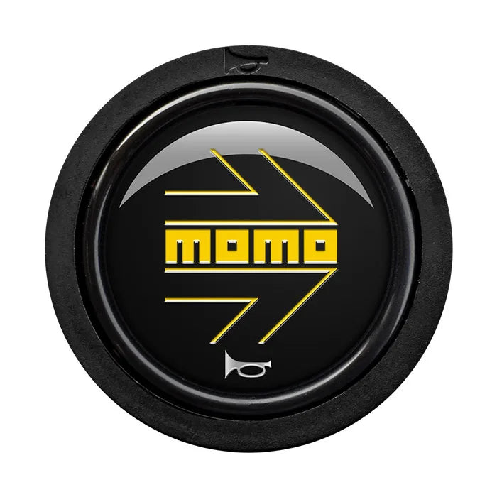Momo Steering Wheel Horn Button Flat Lip - Gloss Black/Yellow Logo