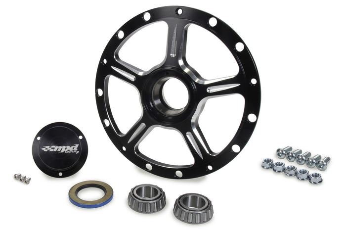 Wheel Hub - Front - Passenger Side - Bearings / Center Cap / Hardware / Seals - Aluminum - Black Anodized - Sprint Car - Each