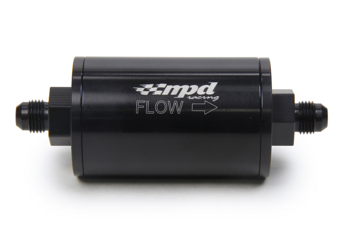 Fuel Filter - In-Line - 30 Micron - Stainless Element - 6 AN Male Inlet - 6 AN Male Outlet - Aluminum - Black Anodized - Each