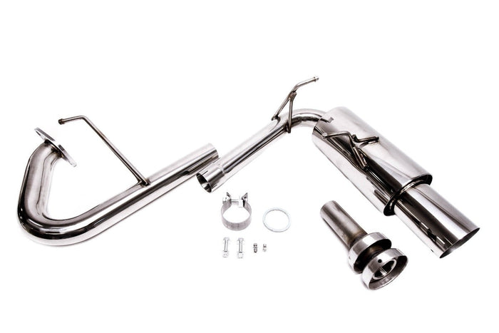 PLM's axle-back exhaust system for the NB Miata is designed with a unique 2-piece slip-fit for precise muffler tip angle adjustment. Constructed from high-quality stainless steel, this system delivers improved exhaust flow and a sporty tone while retaining factory fitment points.