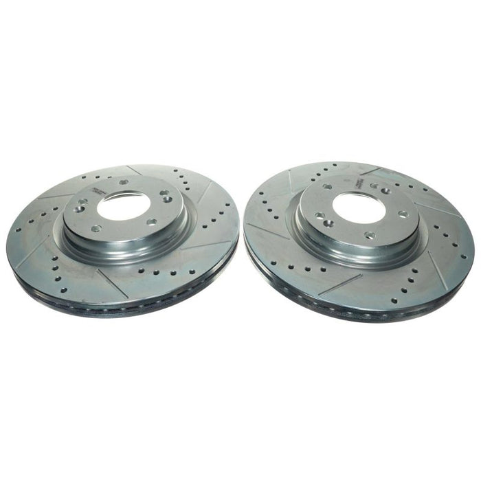 Power Stop drilled and slotted rotors provide a bolt-on upgrade for improved brake cooling and performance. Precision cross-drilled for maximum cooling and maximum performance during extreme conditions; rounded slots sweep away gasses, dust, and moisture to keep a clean friction contact patch on the rotor surface. Silver zinc dichromate plating resists rust and corrosion. With a direct OE fit, there are no special modifications needed.