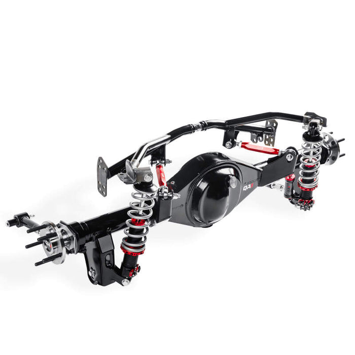 Product Overview QA1's all-in-one solution is a perfect upgrade for your 2nd Gen Camaro or Firebird. We've combined our 4-Link Suspension Kit with a QA1 9" rear housing to deliver top-tier performance and easy installation. No more scavenging for parts or struggling with measurements—each component is designed for a perfect fit, tested by QA1 to ensure hassle-free installation. Enjoy the performance, adjustability, and ride quality you need to handle serious power without ease. Eliminate Your Leaf Springs Upgrade from leaf springs to QA1 MOD shocks and triangulated 4-link suspension providing ride height, ride quality, and instant center adjustment for an aggressive stance and added performance. Easy Installation Our 4-Link Kit with 9" housing makes for an easy installation eliminating the need for custom fabrication which gets you on the road faster. Narrowed 9 Housing Fabricated Center Section: Maximized strength and durability Formed Trailing Arm Brackets: Minimize flex under heavy loads Heavy-Duty 3" Axle Tubes: Built for high-performance 31-Spline Axles: Support up to 650HP, with housing rated up to 800HP Durable Powder Coat: Sleek and long-lasting finish Convenient Maintenance: Drain plug, fill plug, and jack pad included T-bolts, studs, and high-quality roller bearings for smooth assembly and operation Helpful Specs 56-1/8 narrowed wheel mounting width Big Ford New Style Torino Flanges for brake compatibility 5x4-3/4 bolt pattern, ideal for a range of wheels x 3 wheel studs for alloy wheels Ultimate Shock Performance QA1 MOD shocks offer 4-way adjustability for the highest demands in performance and tuning Made in the USA QA1 4-link and 9" housings are proudly made in the USA Fitment Notes Confirm wheel and tire fitment before install Center section not included Narrow housing recommended for mini tubs Welding required QA1 Subframe Connectors recommended May need exhaust modification