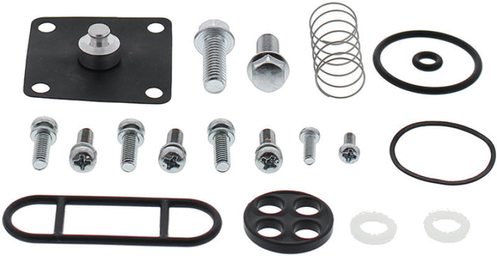 Kit includes all face screws, tank bolts, face gasket, tank gasket, diaphragm, O-rings, wave washer, and miscellaneous components necessary to rebuild on fuel tap. Non-rebuildable, riveted Honda specific kits include special drill and self-tapping screws along with instructions for easy and inexpensive rebuild.