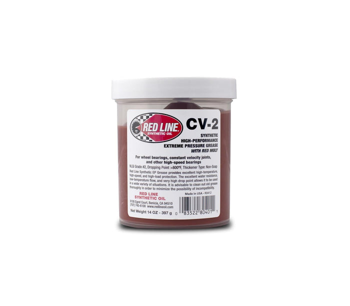 Red Line CV-2 is a premium grease formulated for constant-velocity (CV) joints and other high-load drivetrain components. Packaged in a convenient 14 oz jar, it features a high molybdenum disulfide content to reduce friction and protect metal surfaces under extreme stress.