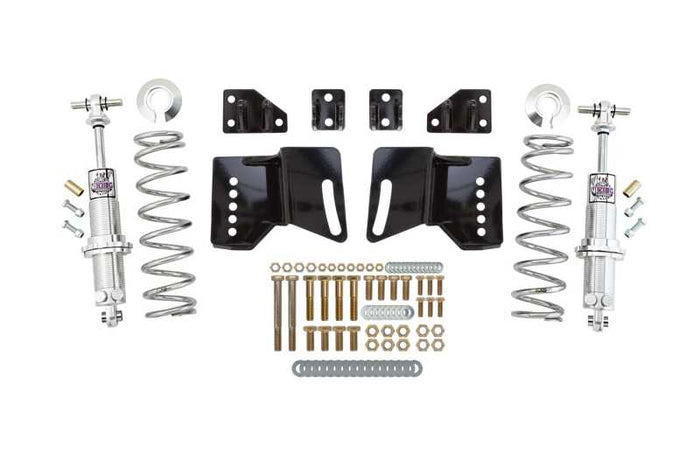 The UMI bolt-in rear coilover kit provides comprehensive adjustments for ride height, spring rate, and damping, in addition to enabling trailing arm adjustments for precise calibration of the instant center. This kit is equipped with a fortified upper mount, specifically designed to accommodate a 2-1/2” racing coilover with a double-shear configuration. The lower brackets, engineered through Finite Element Analysis (FEA), are reinforced and are designed to be bolted directly onto the existing Quick Performance rear lower control arm mounts. These brackets also feature an adjustment mechanism for trailing arm height, facilitating the tuning of the instant center location using the 3 available positions. This product is manufactured and tested in Philipsburg, Pennsylvania, utilizing materials sourced from the United States.We advise that the brackets be installed initially and that measurements be taken from center to center at ride height to guarantee the precise identification of shock part numbers. Regarding compatibility, this kit is designed for direct installation with a Quick Performance rear.