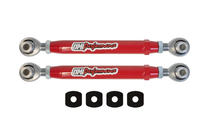The features of the UMI 2522 adjustable toe rods include 4130 chromoly tubing for lightweight strength, TIG welded 4130 chromoly threaded tube adapters, race quality rod end for optimal performance and zero deflection, and on-car adjustability for easy changes.