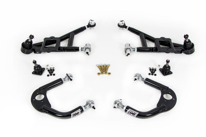 UMI’s fabricated tubular a-arms provide a rock solid foundation for your 4th Gen’s front suspension. Our a-arm kit is built to offer increased rigidity, smooth non-binding travel, a precise steering feel, and an 8lb weight savings over stock. The DOM 1-1/4†diameter tubular sections are precision bent, CNC notched and TIG welded in a jig to form the solid base. In-house built 4130 CrMo tube adapters provide a durable attachment point for the premium Teflon lined race quality rod ends. The spring and shock attach to the arm via a tough 1/4†thick steel shock mount. The CNC machined lower ball joint cup and CNC laser cut upper pad feature premium ball joints installed. UMI’s tubular lower a-arms can be installed on the factory k-member or any aftermarket k-member as well as the stock spindle - making this a true bolt-on product. Manufactured with pride in Philipsburg, PA – USA
