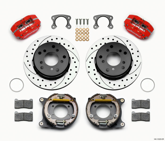 These versions of DPL Pro-Series rear disc kits provides a complete solution for Bronco 65-75 rear axles with Small Ford flange and bearing. (normally: OE 10 inch diameter brakes and 2700 or 2900 GVW.) Forged Billet Dynapro Lug Mount four piston calipers, 12.19" one-piece drum/rotors, and high friction pads provide optimized and balanced braking to compliment front big brake upgrades available for Bronco platform. The neatly hidden internal shoe system provides a clean installation with superior static holding power for parking. Optional caliper finishes and rotor designs enable the builder to personalize the style and optimize brake performance for every individual application.