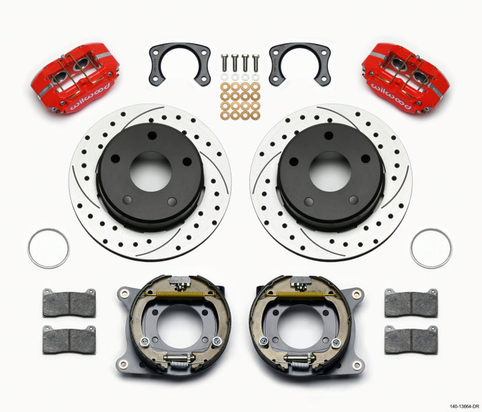 These versions of DPL Pro-Series rear disc kits provides a complete solution for Bronco 76-77 rear axles with Big Ford New flange and bearing. (normally: OE 11 inch diameter brakes and 3300 GVW.) Forged Billet Dynapro Lug Mount four piston calipers, 12.19" one-piece drum/rotors, and high friction pads provide optimized and balanced braking to compliment front big brake upgrades available for Bronco platform. The neatly hidden internal shoe system provides a clean installation with superior static holding power for parking. Optional caliper finishes and rotor designs enable the builder to personalize the style and optimize brake performance for every individual application.