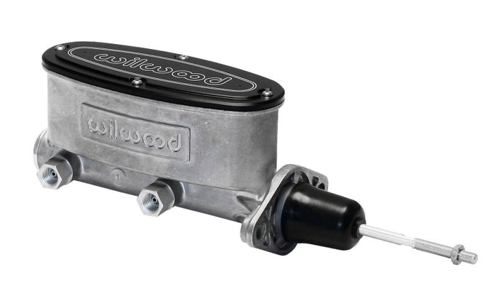 Wilwood's 7/8" or 15/16" bore Tandem Aluminum Master Cylinders available in 3 finishes, plain, ball burnished, and black e-coat. These master cylinders are designed primarily for manual applications and include a pushrod. They're designed for mount flanges from 3.22" to 3.40", common measurements for most domestic cars and trucks from the mid 1960s to present, and offer fluid outlet ports on both sides of the bore. The stroke is set at 1.10" with a volume ratio of 2:1 between the primary and secondary chambers. Machined from high-pressure die castings, each master cylinder weighs only 3lbs, a 75% weight savings over most cast iron OE type master cylinders. We also offer a combination proportioning valve kit, which includes brackets and stainless lines specifically for use with this master cylinder, see PN 260-13190, or 220-13189 for retrofit kit.
