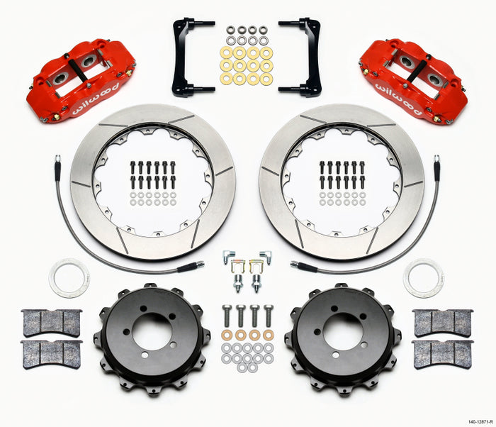 Forged Narrow Superlite 4R four piston calipers are combined with BP-10 compound pads and 12.88" rotors in this group of big brake kits for custom high performance Import Cars. This group of specialized kits retain full use of the OE parking brake, master cylinder output, and ABS where used. FNSL4R rear kits provide complimentary style and performance with 12.88" and larger front brake upgrades in conjunction with wheel, tire, and suspension upgrades. Optional caliper finishes and rotor designs enable the builder to match style and performance on all applications.