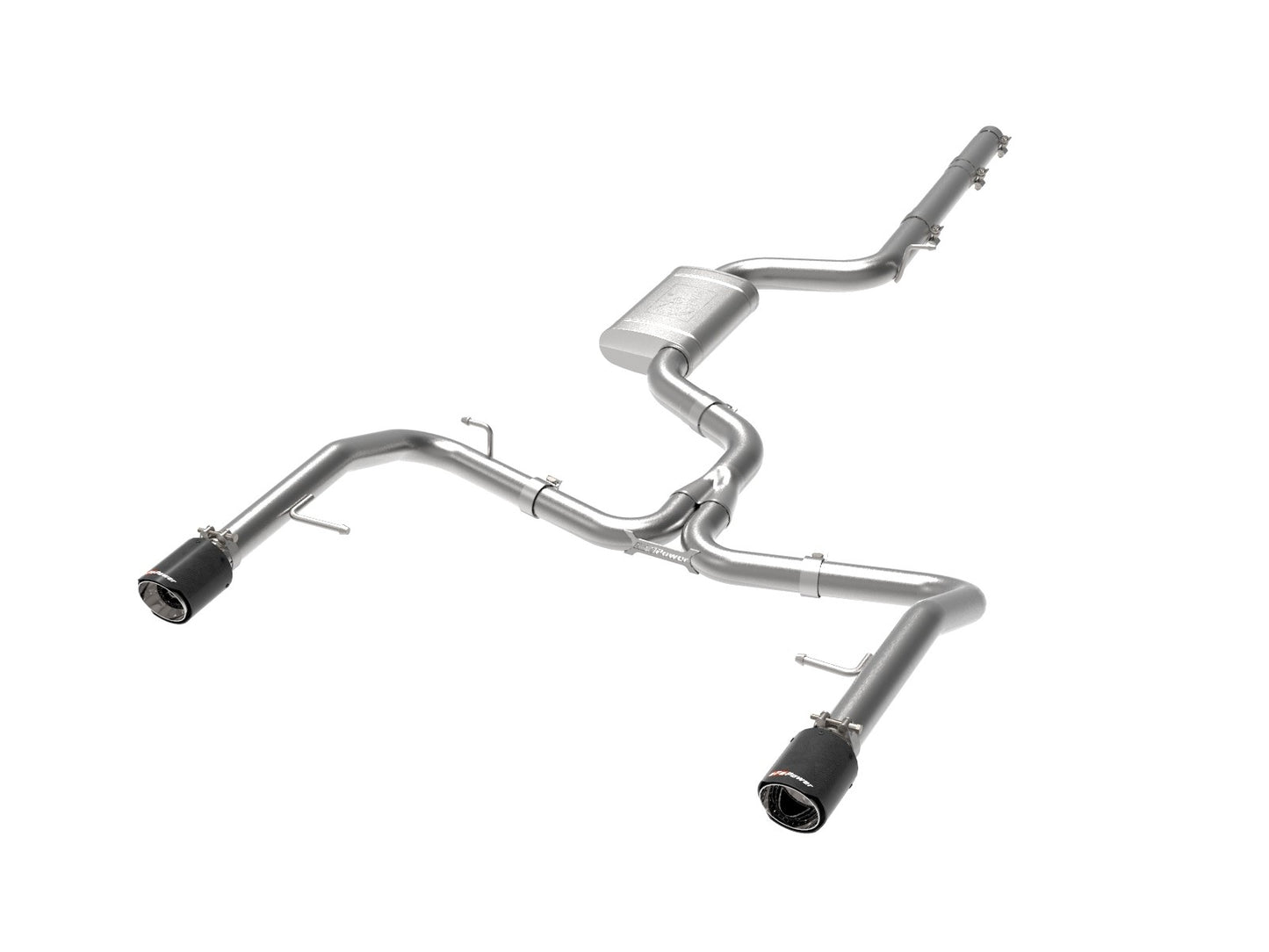 Finishing off this exhaust system are dual 4" diameter carbon fiber 304 stainless steel clamp-on exhaust tips. The tips feature a laser etched aFe POWER logo for a unique style.